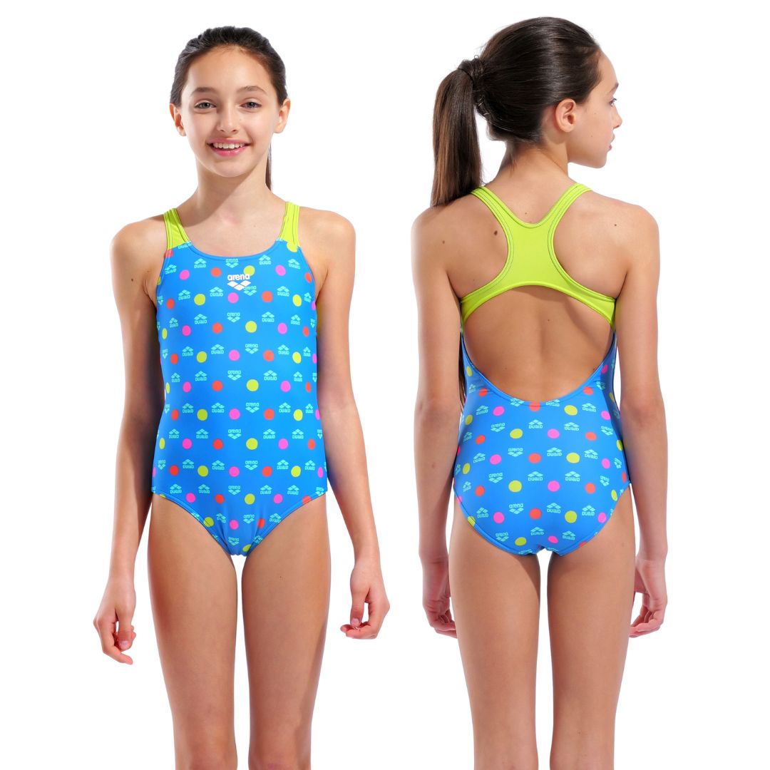 Il design Multiple Dot, caratterizzato da una fantasia fresca e giocosa, dona un aspetto dinamico e accattivante al costume, ideale per ragazze che amano distinguersi in vasca con colore e personalità. Perfetto sia per allenamenti strutturati sia per nuoto ricreativo, questo costume unisce praticità e stile diventando una scelta intelligente per chi cerca qualità, comodità e vivacità estetica. Il modello rappresenta un equilibrio efficace tra performance, longevità e look moderno.